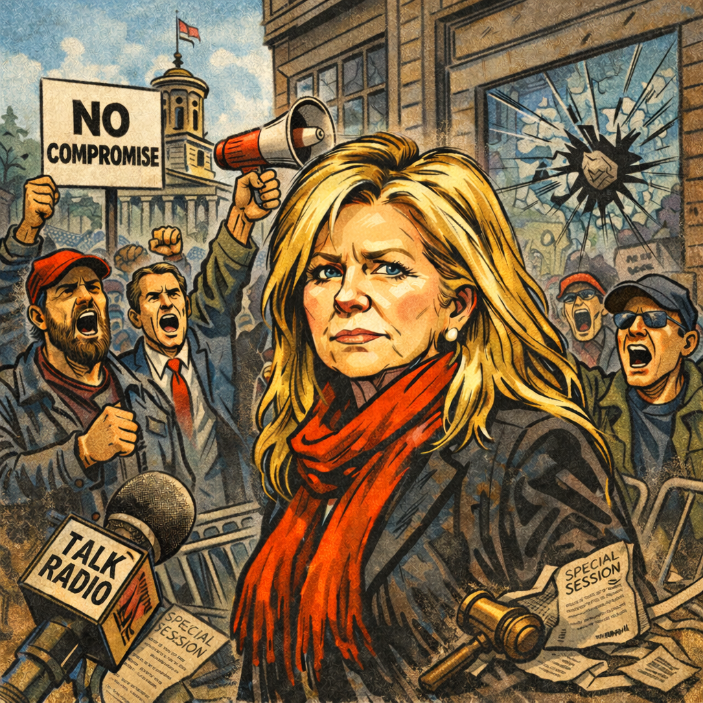 Between 1999 and 2002, Blackburn placed herself at the center of the fight against Governor Don Sundquist’s proposal to address a mounting budget crisis through a 3% state income tax. She used media—especially right-wing radio—to mobilize opposition. On July 13, 2001, during a special legislative session convened to debate the proposal, that movement boiled over into a volatile protest at the State Capitol.